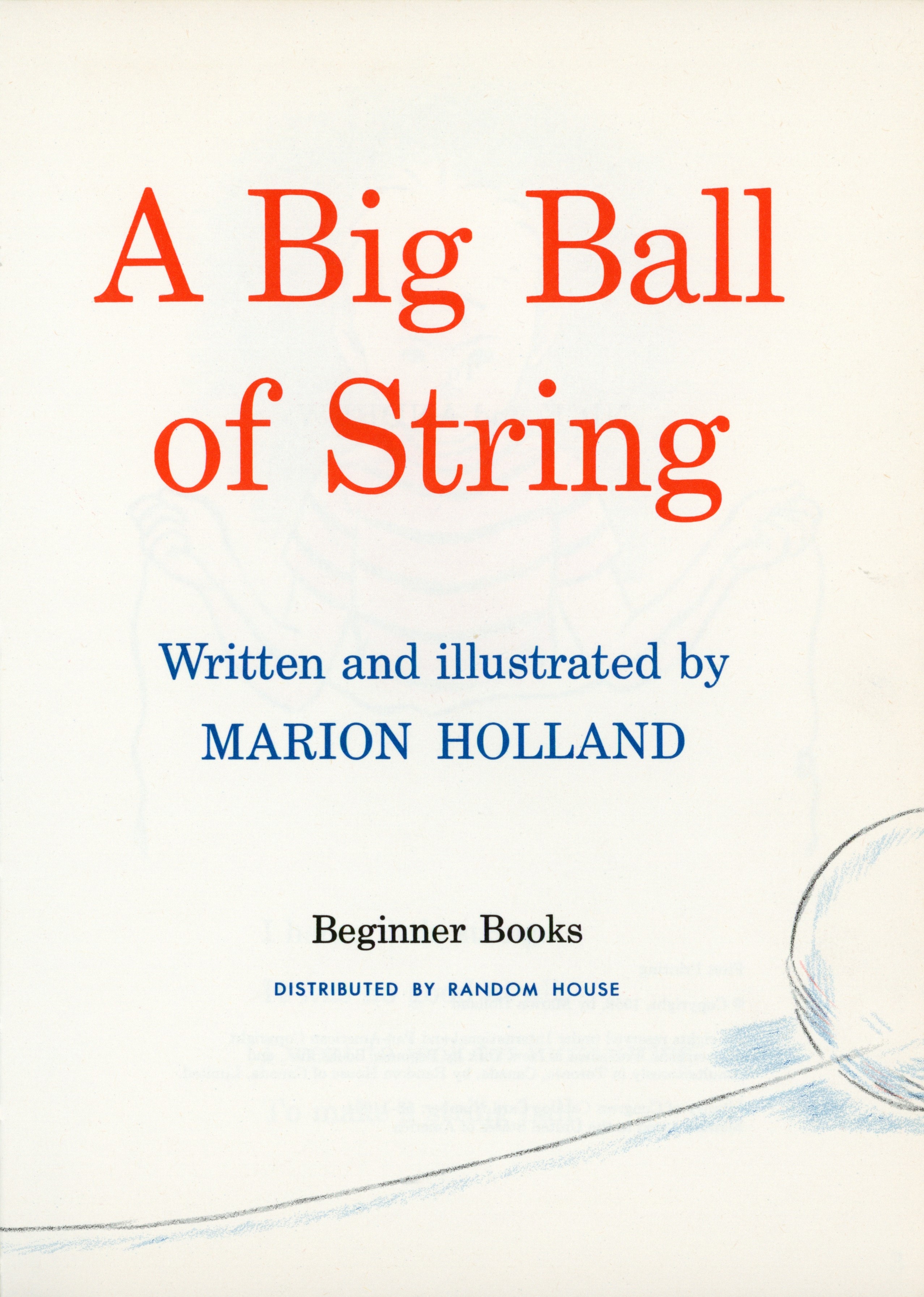 Title Page: "A Big Ball / of String / Written and illustrated by / MARION HOLLAND / Beginner Books / DISTRIBUTED BY RANDOM HOUSE"