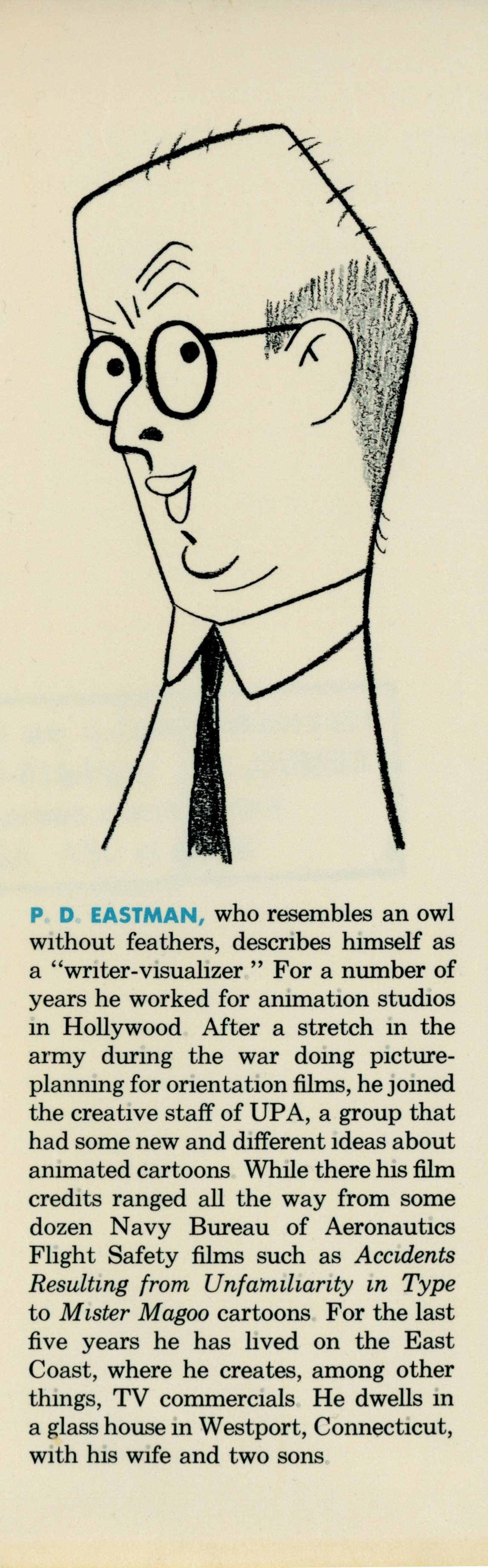 DJ Flap Back: "[P.D. Eastman caricature] / [P.D. Eastman biography]"