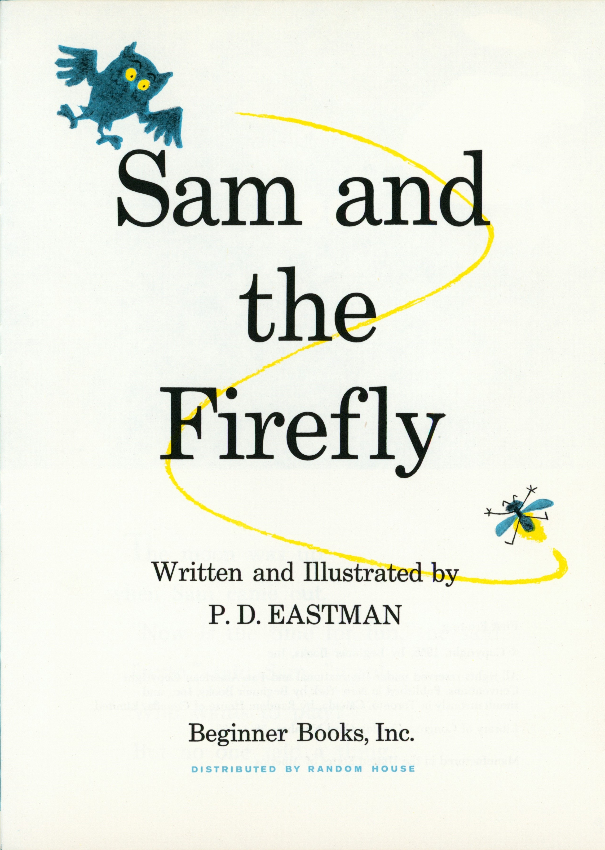 Title Page: "Sam and / the / Firefly / Written and illustrated by / P.D. EASTMAN / Beginner Books, Inc. / DISTRIBUTED BY RANDOM HOUSE"