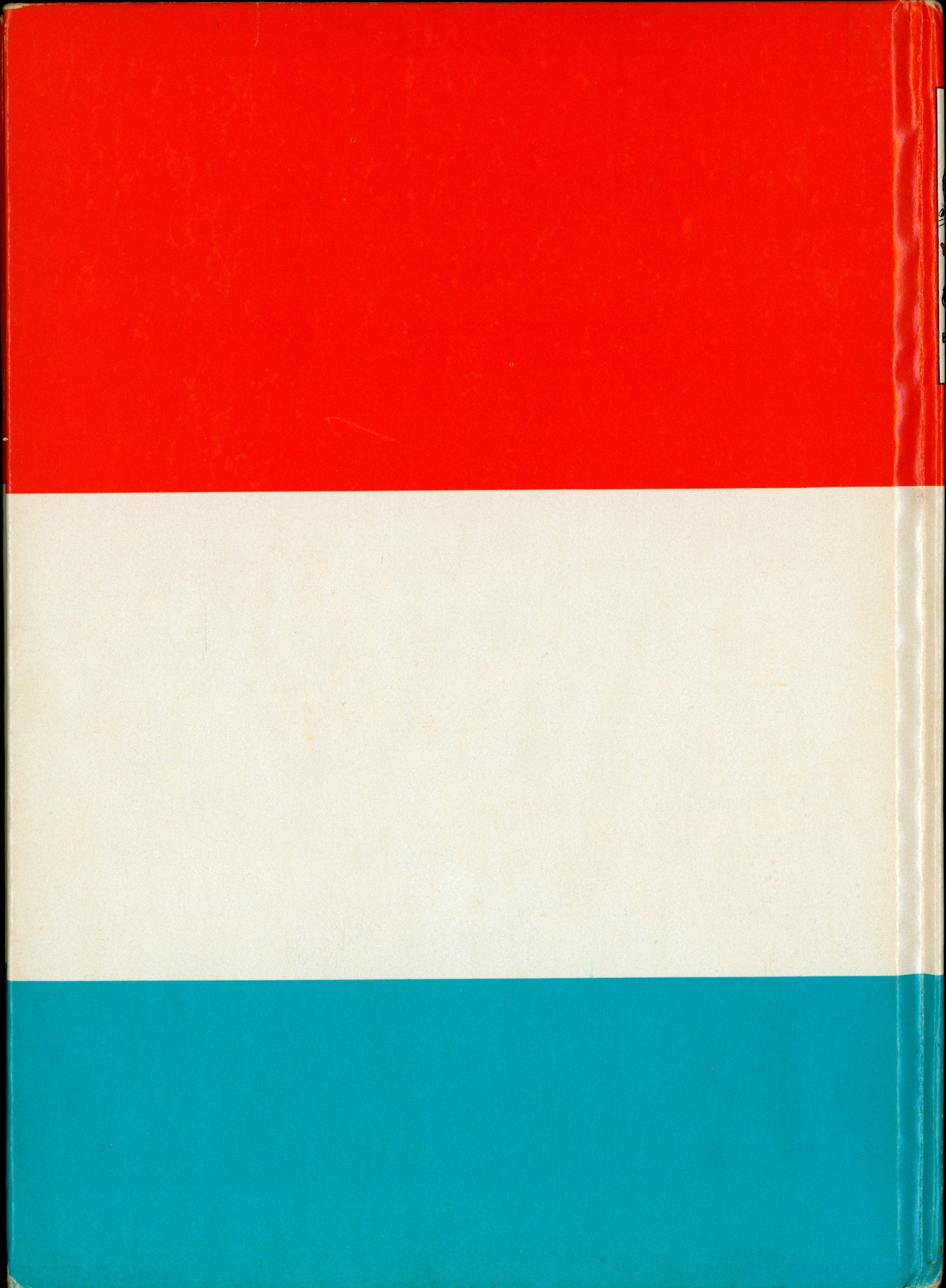 Book Back: Bound in glossy red-white-blue banded paper covered boards. Blank with no illustration or text.