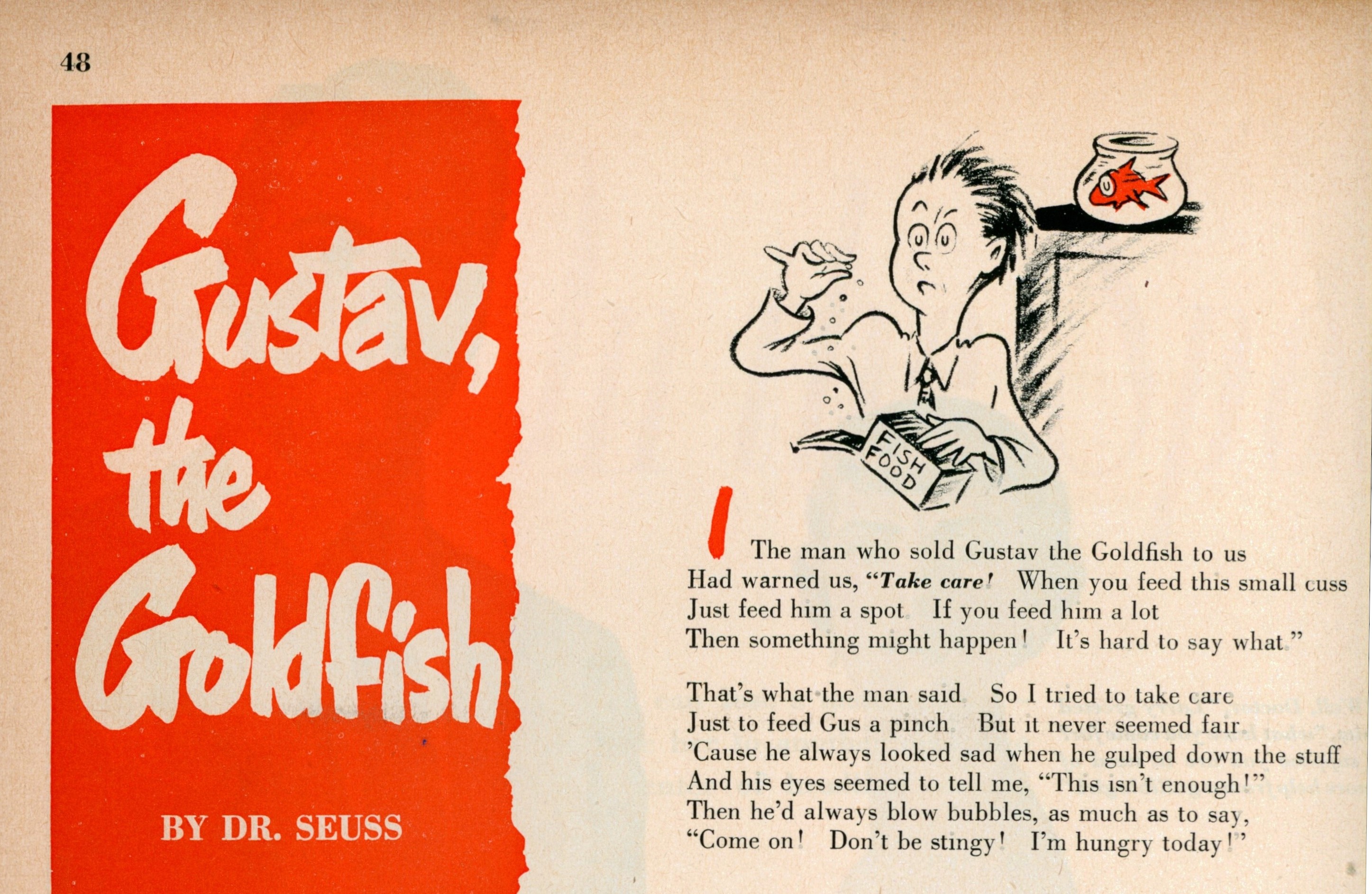 'Gustav The Goldfish' by Dr. Seuss. June 1950 Redbook Magazine pgs. 48-51 \