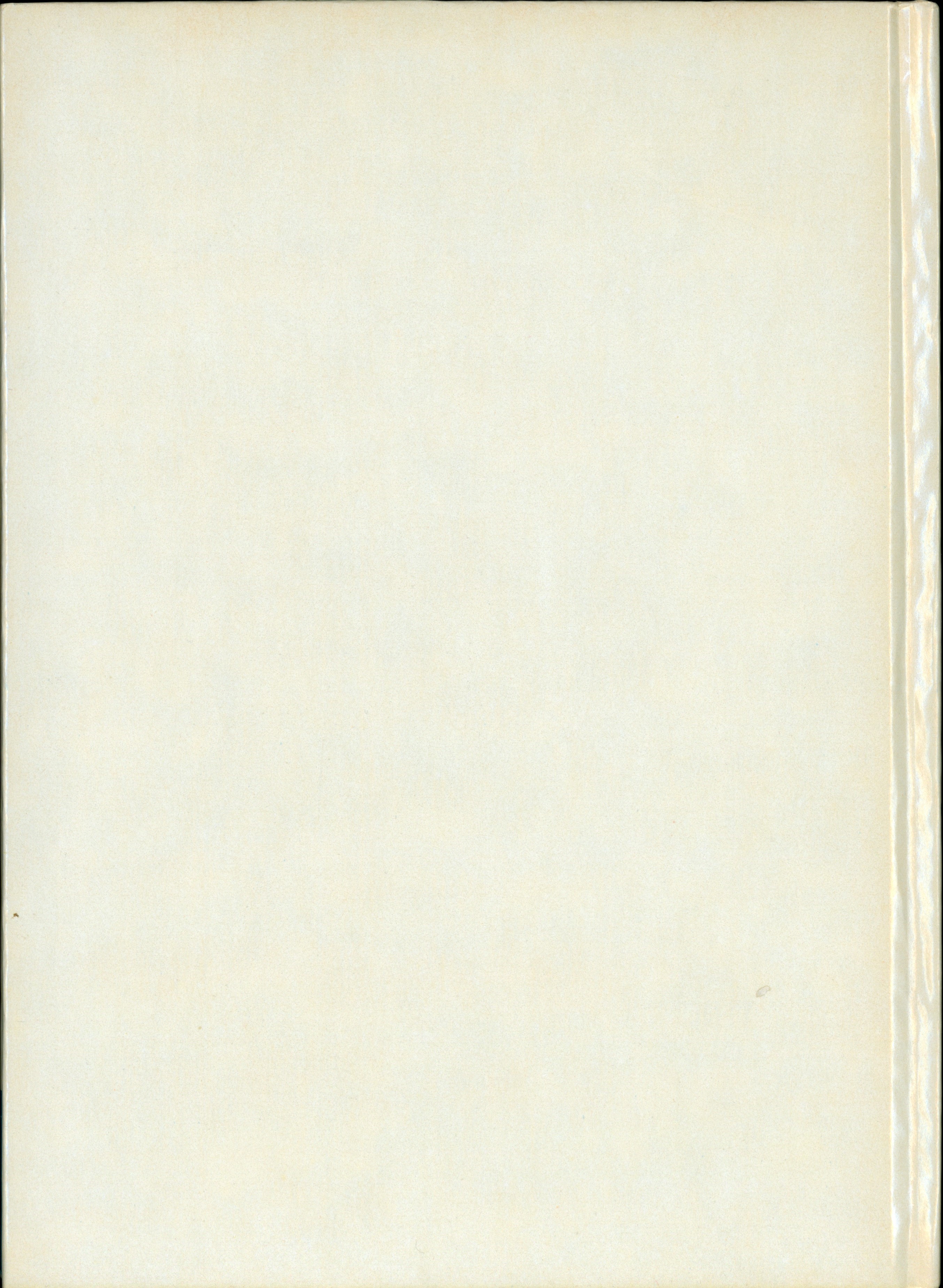 Book Back: Bound in glossy white paper covered boards. Blank with no illustration or text.