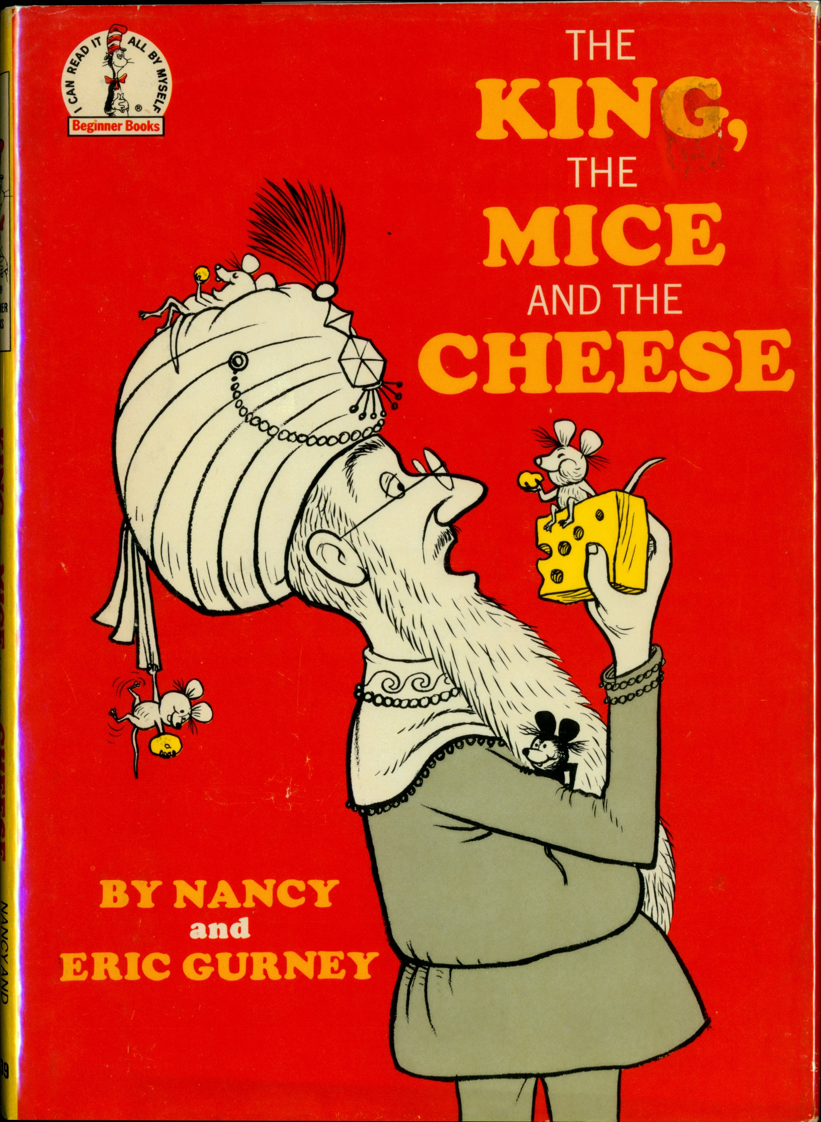 Book Spine: "[BB logo] BEGINNER BOOKS [black horizontal text] THE KING, THE MICE AND THE CHEESE NANCY AND / ERIC GURNEY B-39 [black horizontal text]"