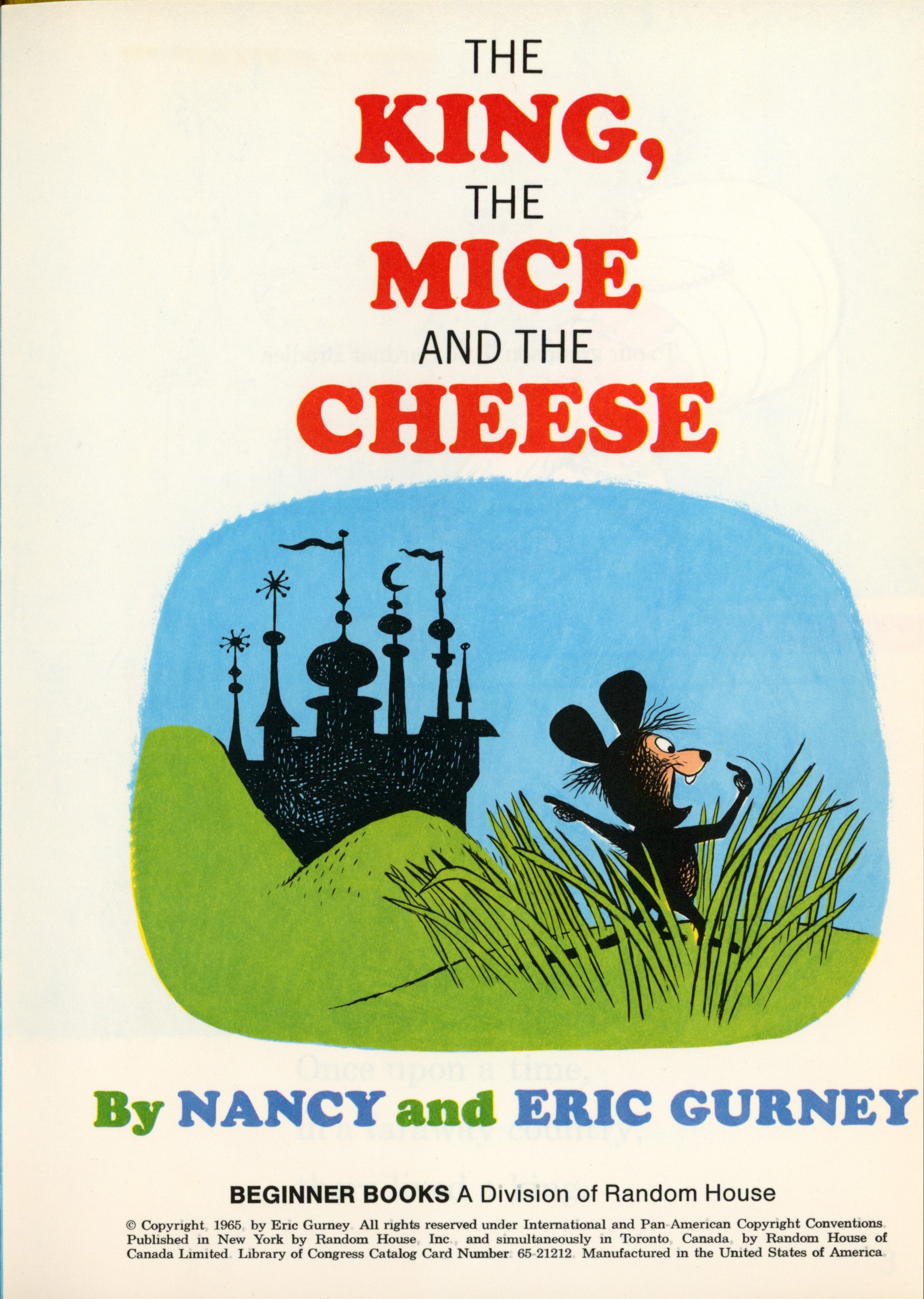 Title Page: "THE / KING, / THE / MICE / AND THE / CHEESE / [illustration] / By NANCY and ERIC GURNEY / BEGINNER BOOKS A Division of Random House, Inc. / [three-line copyright statement]"