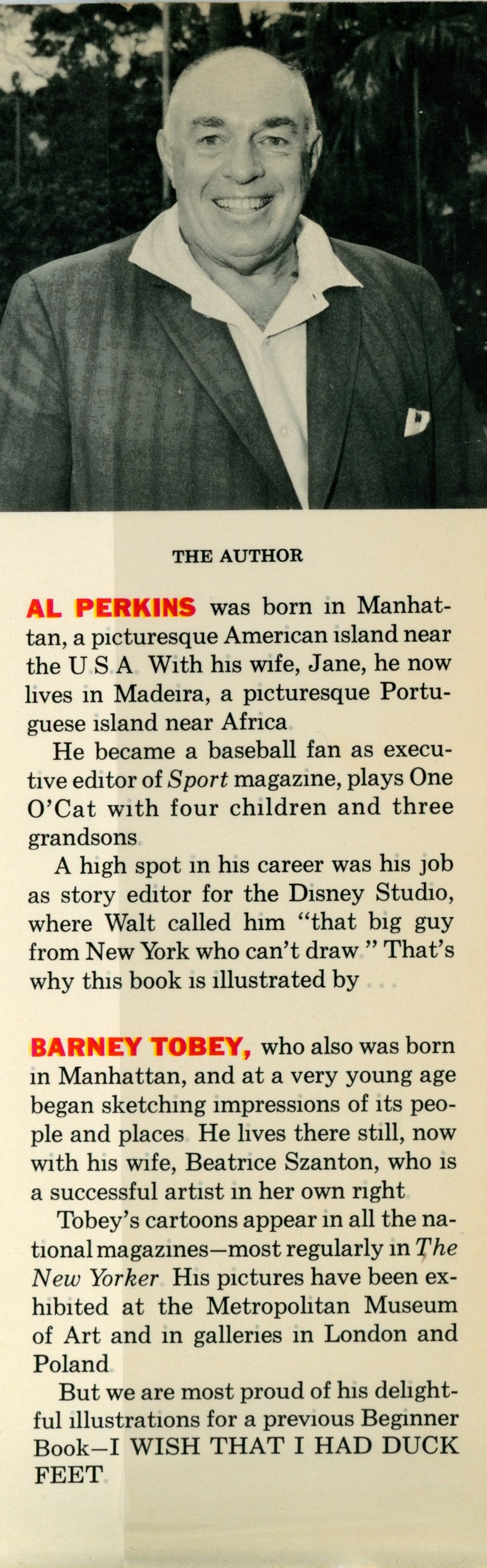DJ Flap Back: "[Photo of Al Perkins] / THE AUTHOR [photo caption / [Three paragraph Al Perkins bio] / [Three paragraph Barney Tobey bio]"