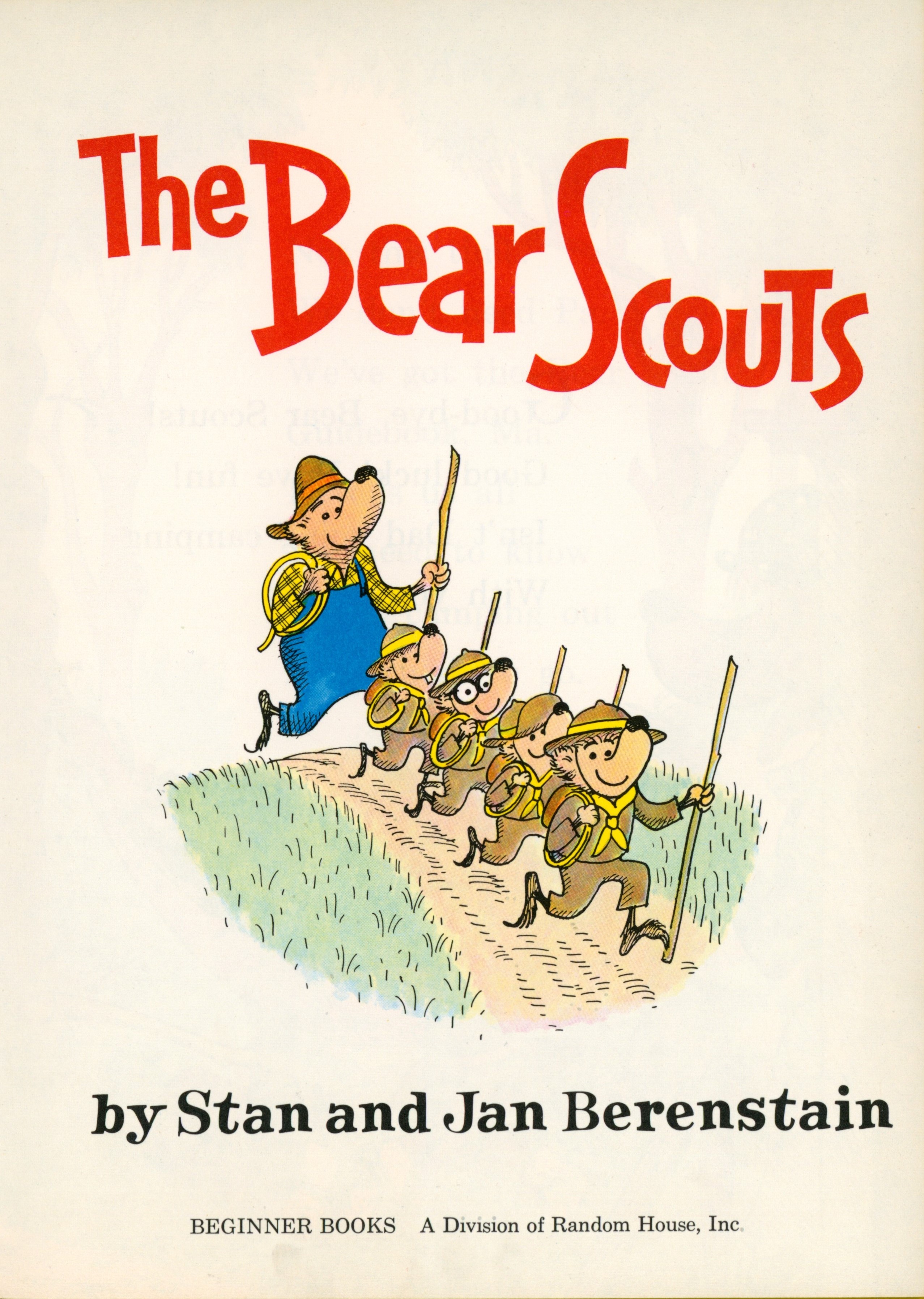 Title Page: "The Bear Scouts / [illustration] / By Stan and Jan Berenstain / BEGINNER BOOKS / A Division of Random House, Inc."