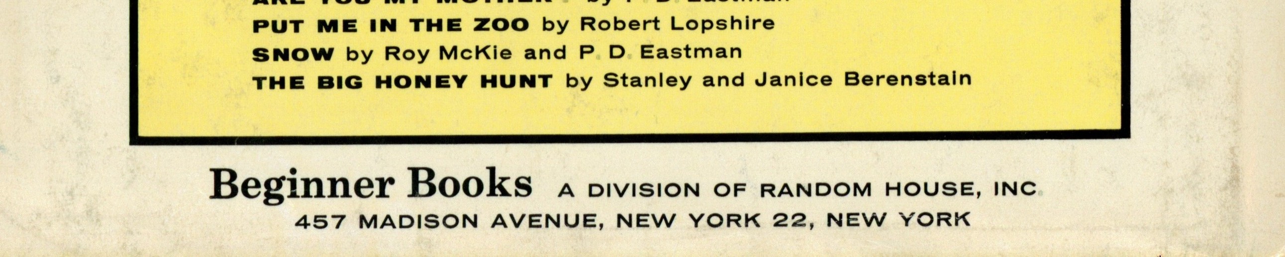 Beginner Books, Distibuted By Random House |
